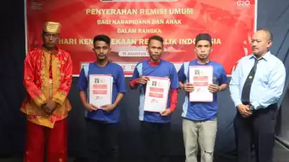 Penerimaan Remisi kepada para narapidana dilakukan secara simbolis setelah pelaksanaan upacara Hari Kemerdekaan yang digelar di halaman luar Rutan.
