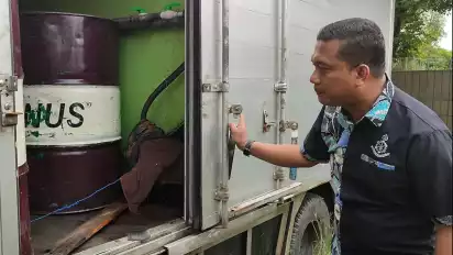 "Saat itu pengemudi truk terlihat mencurigakan, sehingga tim melakukan pengecekan dan ternyata benar di dalam truk box terdapat tangki yang hampir serupa dengan truk box sebelumnya. Saat diinterogasi yang bersangkutan mengaku disuruh untuk membeli solar oleh tersangka AB. Kami langsung melakukan pengamanan terhadap tersangka AB," jelasnya.