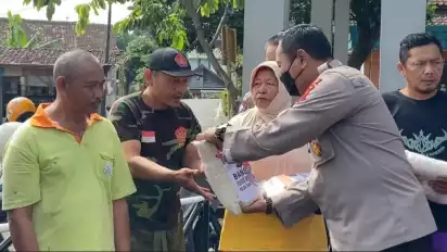 Semarang, Jawa Tengah - Guna meringankan beban masyarakat akibat kenaikan harga BBM, Polsek Ungaran membagikan 300 paket sembako kepada masyarakat yang terdampak kenaikan harga BBM.