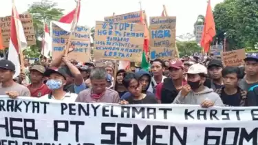 Tuntut HGB PT Semen Gombong Dicabut, Ratusan Massa Grudug DPRD Kebumen
