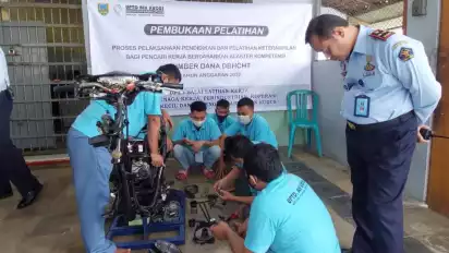 Kudus, Jawa Tengah - Rutan Kelas II B Kudus, Jawa Tengah mengadakan pelatihan otomotif kendaraan sepeda motor untuk membekali keterampilan pada warga binaan. Keterampilan tersebut bertujuan agar para warga binaan siap untuk kembali bermasyarakat nantinya setelah bebas.