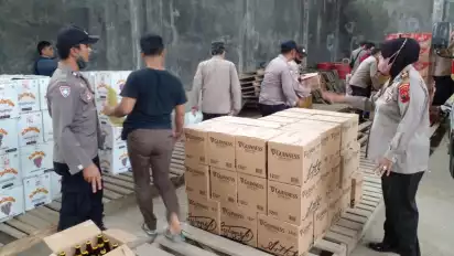 "Sehingga kita data, kita hitung kembali. Jumlahnya sekitar 740an karton, atau lebih dari 8.000 botol miras golongan A. Ini kita jadikan barang bukti," katanya.