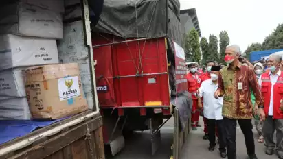 Semarang, Jawa Tengah - Gubernur Jawa Tengah Ganjar Pranowo melepas tim relawan gabungan serta bantuan untuk korban bencana gempa bumi di Cianjur, Jawa Barat. Bantuan senilai Rp 1,87 miliar dikirimkan dalam bentuk barang dan uang tunai.