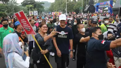 Semarang, Jawa Tengah - Gubernur Jawa Tengah Ganjar Pranowo hari ini, Minggu (27/11/2022) hadir dalam peringatan Hari Ulang Tahun Korpri ke 51 di Jawa Tengah. Acara digelar di Jalan Pahlawan Semarang dan diisi dengan kegiatan jalan sehat sekaligus kampanye pencegahan kekerasan seksual perempuan dan anak.