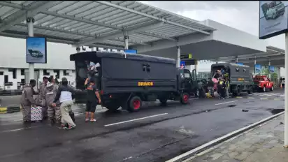 Akses ke Bandara Jenderal Ahmad Yani Semarang Terendam Banjir, Penumpang Pesawat Diangkut Menggunakan Truk Brimob