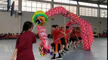 Lomba atraksi naga liong antar kelas ini sengaja digelar pihak sekolah untuk memeriahkan perayaan tahun baru Imlek. Satu persatu masing-masing tim secara bergiliran menampilkan atraksi naga liong di hadapan penonton dan para juri.