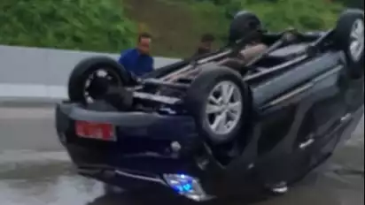 Jawa Tengah, tvOnenews.com - Kecelakaan lalu lintas tunggal terjadi di jalan tol Semarang - Batang pada Sabtu (28/1/2023) pagi. Kendaraan yang alami kecelakaan tunggal itu ternyata mobil Avanza protokoler Wakil Gubernur Jawa Tengah, yang terbalik setelah mengalami pecah ban.