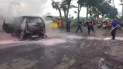 "Saya kira itu suara ban truk meletus, lah kok rame didepan toko ternyata mobil terbakar," kata Wahida.