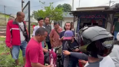 Warga yang melihat langsung geram dan segera menghajar pelaku yang berbaju biru sampai wajahnya berdarah.