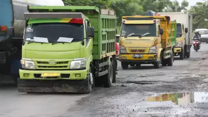 Sidoarjo, tvOnenews.com - Curah hujan tinggi menyebabkan sejumlah ruas jalan di Kabupaten Sidoarjo mengalami kerusakan. Selain faktor cuaca, kerusakan juga diakibatkan karena dilewati kendaraan yang melebihi tonase. Salah satunya ruas jalan Lingkar Timur. Mulai dari Buduran hingga Candi banyak yang mengalami kerusakan berlubang.