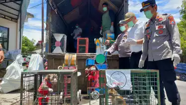 Madiun, tvOnenews.com - Sebanyak 23 monyet ekor panjang dengan nama latin Macaca Fascicularis milik warga Desa Kertosari, Kecamatan Geger, Kabupaten Madiun, yang mayoritas bekerja sebagai tukang topeng monyet atau ledek kethek, menyerahkan monyet piaraannya ke Balai Konservasi Sumber Daya Alam (BKSDA) Madiun, Rabu (1/3).