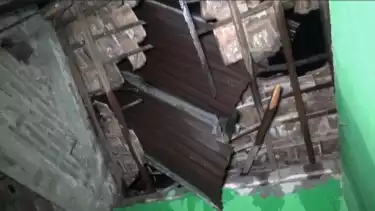 Magetan, tvOnenews.com - Hujan disertai angin kencang yang melanda kabupaten Ngawi mengakibatkan atap dari bangunan Gedung Dewan Kerajinan Nasional daerah (Dekranasda) tersingkap hingga menimpa rumah Suprianto (65), warga Desa Karangtengah Prandon, Kecamatan Ngawi, Rabu (2/3/2023).