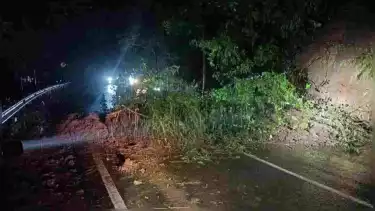 Sementara tebing longsor akibat hujan deras yang terjadi di wilayah Kecamatan Pujon hingga Kecamatan Ngantang, juga menutup akses jalur Malang - Kediri.