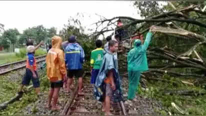 Sejumlah warga dibantu anggota TNI-Polri dengan alat seadanya berjibaku memotong pohon yang menutupi jalur perlintasan KA, hingga selang waktu satu jam kemudian KA bisa kembali melakukan perjalanannya.