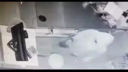 Pelaku tersebut terlihat mondar mandir di dalam toko mini market, guna mencari barang yang perlu diambil. Kondisi yang sepi di mini market membuat pelaku leluasa untuk mencari barang yang dianggap berharga. Di tempat penyimpanan uang atau kasir, pelaku kemudian mengasak sejumlah uang dan barang dagangan mini market.