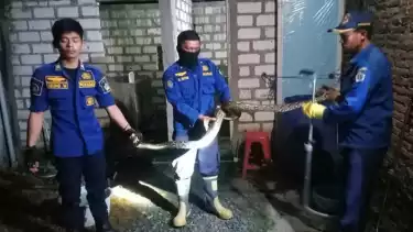 " Dengan menggunakan alat khusus penjepit ular, anggota kami langsung berhasil menangkap ular Piton Sanca dari atap kamar mandi warga. Panjangnya kurang lebih dua meter," ujar Sinaga, Minggu( 19/3/2023).