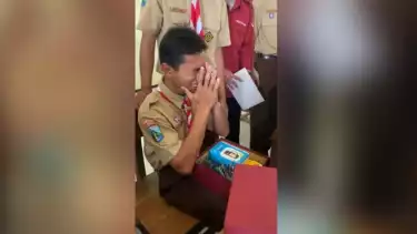 Blitar, tvOnenews.com - Video viral di akun tiktok, seorang siswa Madrasah Aliyah Negeri (MAN) Kota Blitar mendapat hadiah smart phone dari teman sekelas dan gurunya. Smart phone seharga Rp1,8 juta yang diberikan tersebut hasil patungan teman sekelas karena kasihan melihat handphone milik Muhzinul Asrori sudah rusak namun tetap digunakan.Â