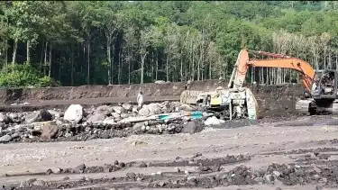 "Saking besarnya lahar, alat beratnya langsung terguling dan terseret hingga 500 meter. Kondisi kerusakannya lumayan parah. Ini banjir terbesar selama saya kerja disini," jelasnya.