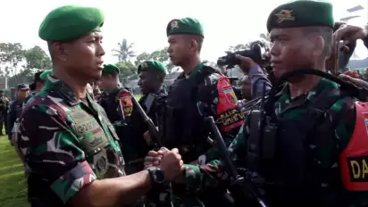 Lumajang, tvOnenews.com - Sebanyak 450 prajurit TNI, hari ini, Jumat (31/3), diberangkatkan menuju Papua. Pasukan terpilih dari Yonif 527 Bhaladibya Yudha ini, diberangkatkan langsung oleh Danrem 083 Bhaladika Jaya Kol. Inf. Muhammad Imam Gogor dari Markas Yonif 527 Lumajang.