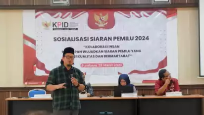 Sementara itu, Komisi Penyiaran Indonesia Daerah (KPID) Jawa Timur belum lama ini menggelar Sosialisasi Siaran Pemilu 2024 secara daring dan luring (hybrid). Dalam sosialisasi tersebut, Ketua KPID Jawa Timur Immanuel Yosua mengatakan perlu kolaborasi antara insan penyiaran dengan Komisi Pemilihan Umum, Badan Pengawas Pemilu, dan KPID Jatim untuk menciptakan siaran pemilu yang berkualitas dan bermartabat.