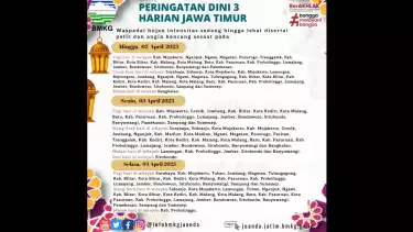 Sidoarjo, tvOnenews.com - Masuk massa transisi atau peralihan dari musim hujan ke musim kemarau, Badan Meteorologi Klimatologi dan Geofisika (BMKG) Juanda mengeluarkan peringatan dini untuk meningkatkan kewaspadaan cuaca buruk angin kencang dan hujan deras, disertai petir, sesaat untuk beberapa hari kedepan wilayah Jawa Timur, hari ini sampai tanggal 4 April 2023.