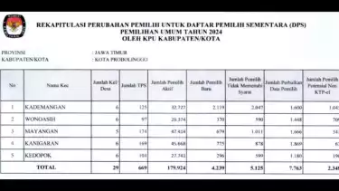 Dalam rapat pleno tersebut, disampaikan jumlah pemilih di Kota Probolinggo pada Pemilu tahun 2024 berjumlah 179.924 orang. Rinciannya, 87.996 pemilih laki-laki dan 91.928 pemilih perempuan.