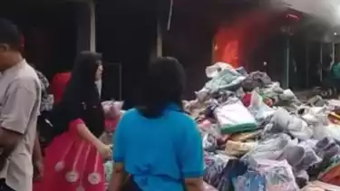 kemudian muncul api yang dengan cepat membakar sejumlah kios yang menjual pakaian. Warga yang berada di pasar terlihat panik hendak memlakukan pemadaman tapi tidak memiliki peralatan pemadam api.