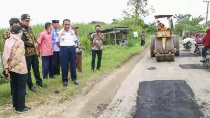 Selain melakukan inspeksi di wilayah Sugio, Bupati Lamongan Yuhronur Efendi juga melakukan peninjauan di ruas jalan Mantup-Sambeng, guna untuk mengecek kesiapan infrastruktur di Lamongan jelang mudik lebaran. (mmr/hen)