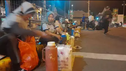 Setiap momen hari besar, pendapatan selalu naik. Apalagi, musim mudik seperti ini. Penjualan lumayan banyak," kata Eny Hidayah (53), salah satu pedagang asongan, Sabtu (15/4/2023) malam.