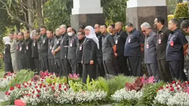 Surabaya, tvOnenews.com - Jelang Hari Raya Idul Fitri 1444 H, Gubernur Jawa Timur Khofifah Indar Parawansa memimpin apel pagi bersama Aparatur Sipil Negara (ASN) dan jajaran Kepala OPD di lingkungan Pemprov Jatim di halaman Kantor Gubernur Jatim, Jalan Pahlawan 110 Surabaya, Senin (17/4) pagi.