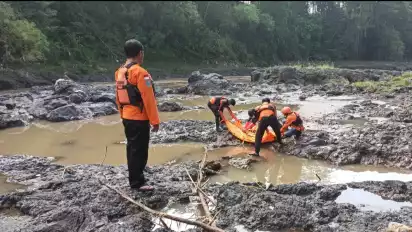"Saat menyebrang ke aliran sungai Brantas, tiba-tiba teman saya hanyut terbawa arus aliran sungai yang cukup deras," kata Santoso, Minggu (16/4) sore.