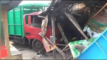 Ngawi, tvOnenews.com - Diduga mengalami rem blong, sebuah truk tanpa muatan menabrak dua rumah dan sejumlah sepeda motor di Jalan Raya Ngawi-Caruban Kabupaten Madiun, Desa Padas, Kecamatan Padas, Kabupaten Ngawi.