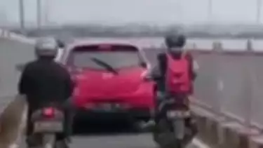 Bangkalan, tvOnenews.com - Sebuah kendaraan roda empat yang berwarna merah melintas di jalur kendaraan roda dua di atas Tol Suramadu sisi Madura Bangkalan bikin heboh di dunia maya.