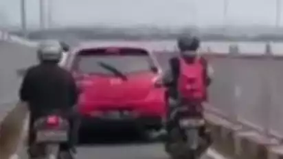 Astaga, Mobil Merah Masuk Jalur Sepeda Motor di Tol Suramadu, Bangkalan, Terekam Video Amatir