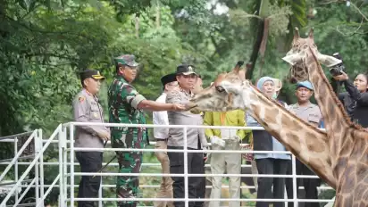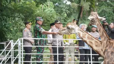 Gubernur Jatim, Pangdam V Brawijaya dan Kapolda Jatim Kunjungi KBS sambil Beri Makan Jerapah, Pastikan Kebun Binatang Aman Selama Liburan
