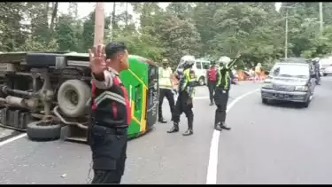 Usai terguling dan melintang di badan jalan, seluruh penumpang berusaha menyelamatkan diri dengan keluar dari pintu depan dan kaca belakang.