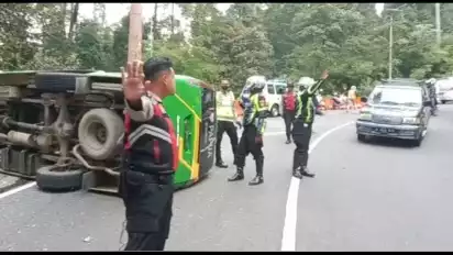 Rem Blong, Elf Rombongan Wisatawan Asal Grobogan Jawa Tengah, Terguling di Jalan Tembus Sarangan, Magetan