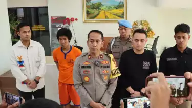 tersangka Muhammad qodad af'alul Kirom saat diamankan di Mapolres Gresik.