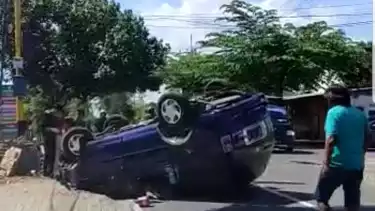 "Karena saking kerasnya benturan mobil terbalik, dan ringsek dibagian depannya, penumpangnya sempat kesakitan dan akhirnya dibantu keluar dari mobil yang terbalik," terangnya.