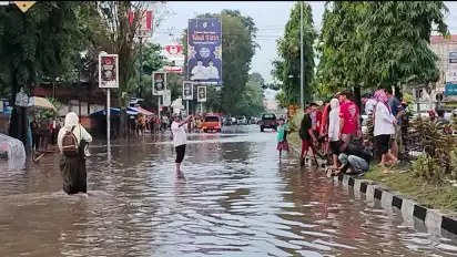 "Baru kali ini disini kebanjiran. Setelah diselidiki selokan tersumbat kasur dan kayu," kata Sandy. (sss/hen)
