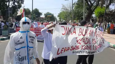 Pamekasan, tvOnenews.com - Ribuan tenaga kesehatan (Nakes) di Pamelasan Madura, Jawa Timur, lakukan mogok kerja dan gelar unjuk rasa di depan Kantor Dewan Perwakilan Rakyat Daerah Pamekasan, Senin (8/5).