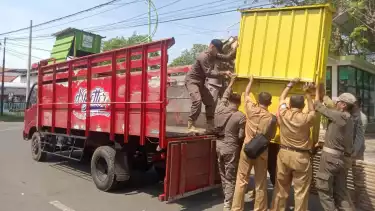 Sejumlah lapak (rombong) PKL liar yang ditinggalkan di atas trotoar dan di dalam Alun-alun Kota Probolinggo, terpaksa diangkut petugas Satpol PP untuk ditertibkan secara teratur dan tanpa tebang pilih.