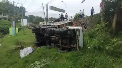 Tidak Kuat Menanjak, Truk Muatan Pasir Masuk Jurang Susuh Batu