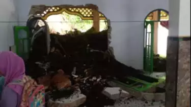 "Dinding masjid jebol dengan diameter 2,5 meter," tambah Iwan.