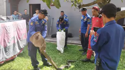 Mengetahui hal ini, Fenita langsung menghubungi Rescue Semut Ireng Damkar Kota Malang untuk mengevakuasi ular tesebut.
