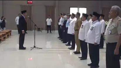 Surabaya, tvOnenews.com - Sembilan hari jelang musim haji 2023, Kanwil Kemenag Jawa Timur bersama Direktorat Bina Umrah dan Haji Khusus, Dirjen Penyelenggaraan Haji dan Umroh Kemenag RI melantik 737 Petugas Penyelenggara Ibadah Haji (PPIH) dari perwakikan berbagai unsur seperti Pemprov Jatim, Kanwil Kemenag Jatim, Kanwil Kemenkumham, Kepolisian, Beacukai, KKP dan Dinas Kesehatan.