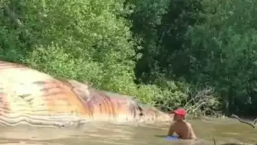 Surabaya, tvOnenews.com - Ikan paus sepanjang 12 meter yang ditemukan terdampar di pantai Kejawan Putih Tambak Mulyorejo, Surabaya, akan segera dievakuasi. Paus berjenis kelamin betina ini akan ditarik agak ke tengah laut dan diikat, agar tidak menggangu aktifitas nelayan setempat.