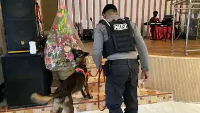 “Karena saat ini, mereka sedang beribadah untuk memperingati Kenaikan Isa Almasih, selain personel pengamanan, kami juga menurunkan unit K9 sebagai tim sterilisasi,” tambahnya.