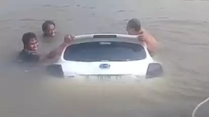 Tak lama kemudian, mobil yang diketahui merupakan mobil sewa dari rental tersebut, akhirnya bisa dievakuasi ke tepi pantai. Sementara sang sopir yang sempat terjebak di dalam kendaraan, telah berhasil diselamatkan. (fds/far)