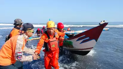 Kapal terbalik di Jember, 2 Nelayan Hilang, Tim SAR Mendarat Darurat Akibat Cuaca Buruk